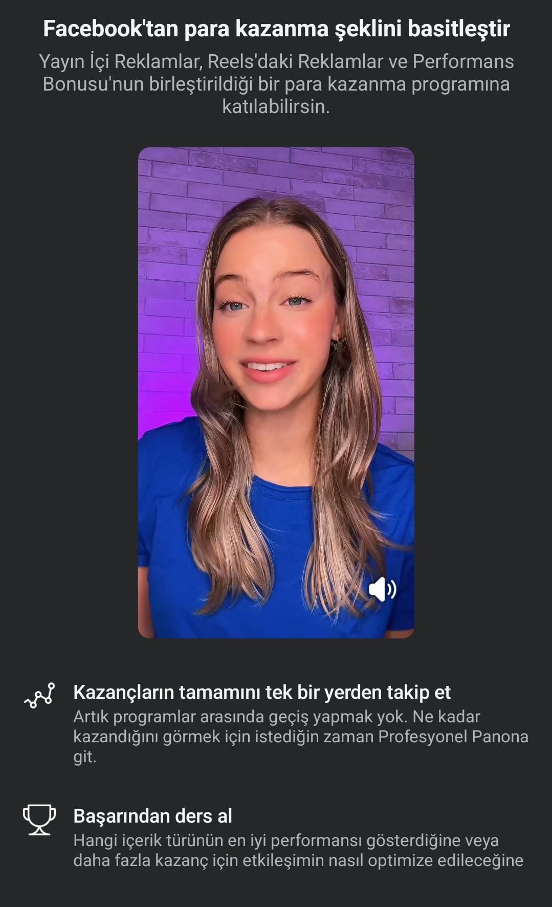 Eskiden “In-Stream Ads”, “Reels Bonus” veya “Performance Bonus” gibi farklı yöntemler vardı. Ancak artık her şey tek bir programın içinde birleşti. Bu sayede içerik üreticiler;